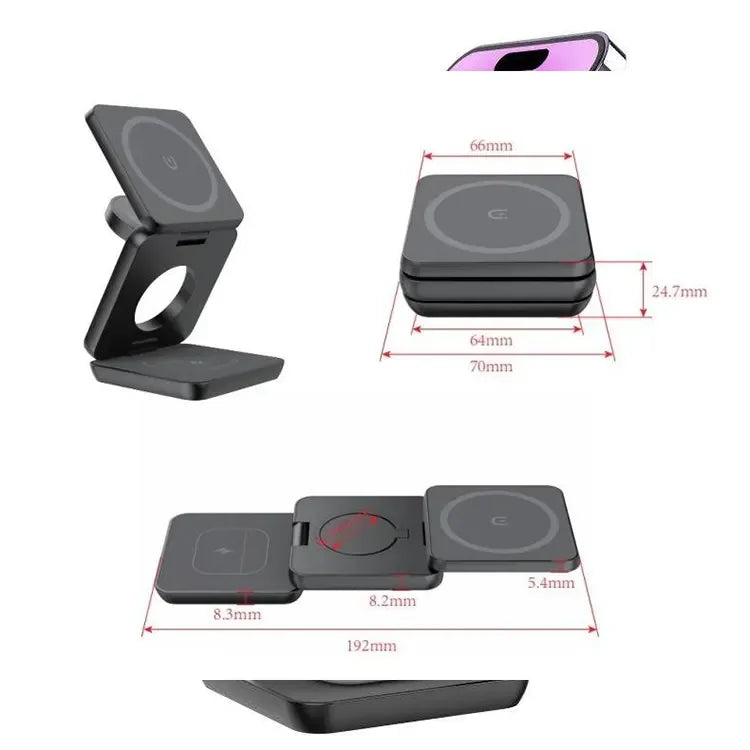 Foldable Magnetic Wireless Charger 3-in-1 Fast Charging Station for iPhone 12–16 Pro Max
