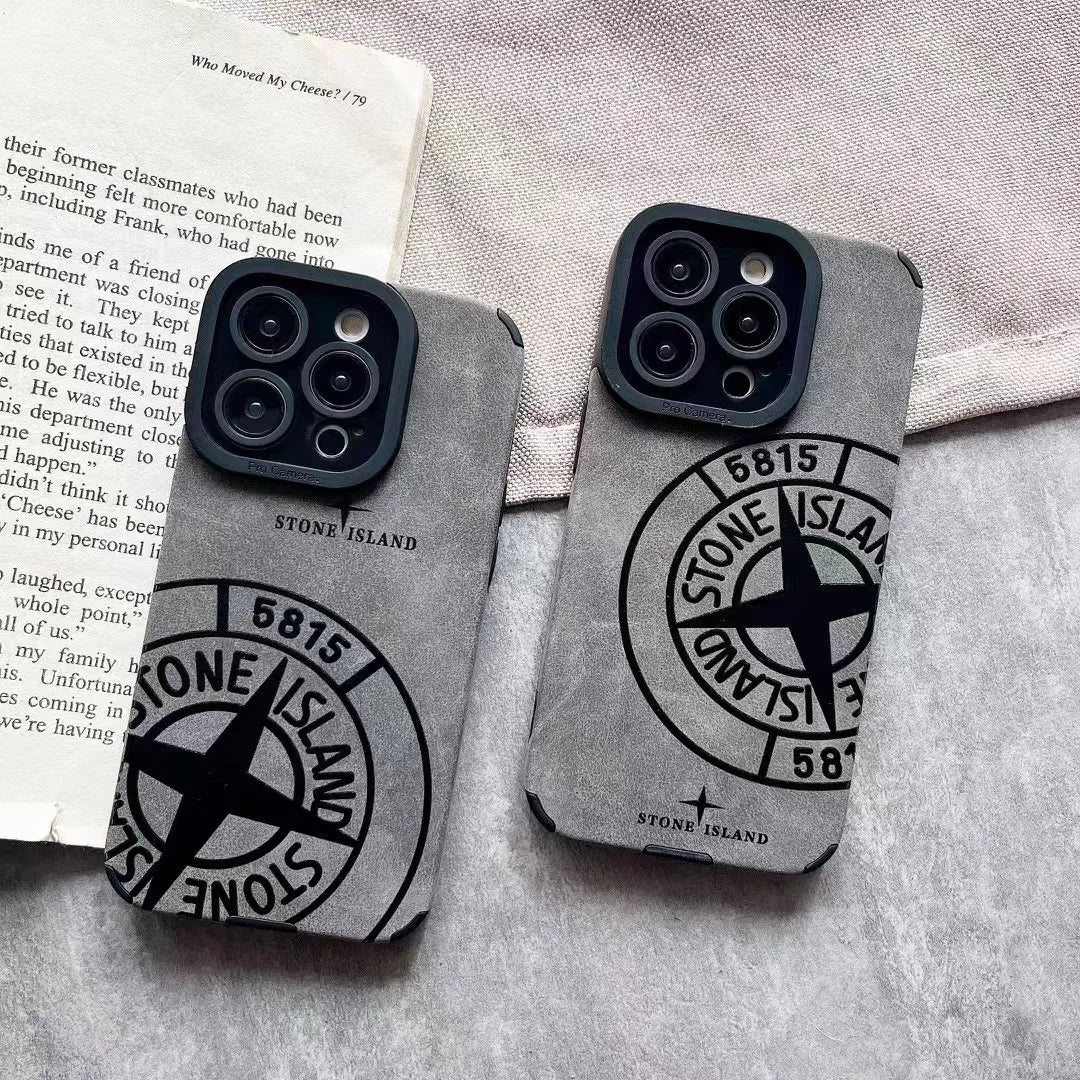 Elevate your style with the Fashion Brand Stone Suede Leather Mobile Phone Case for iPhone series.