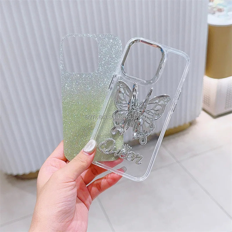 Bling Glitter Phone Case with 3D Butterfly Holder for i phone