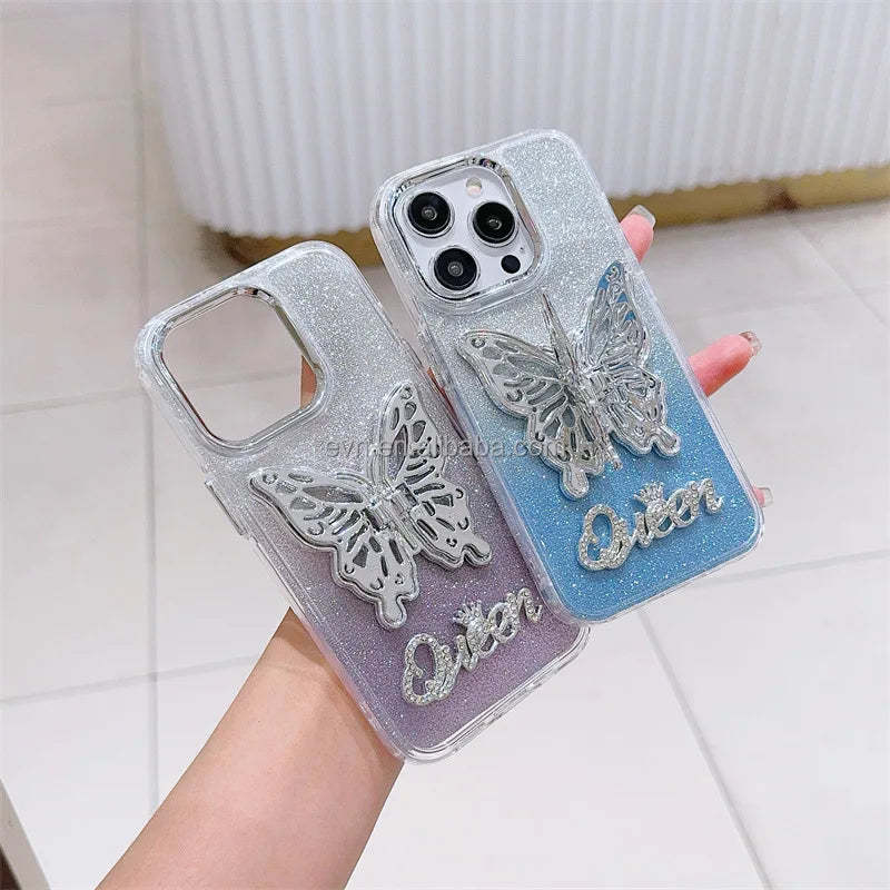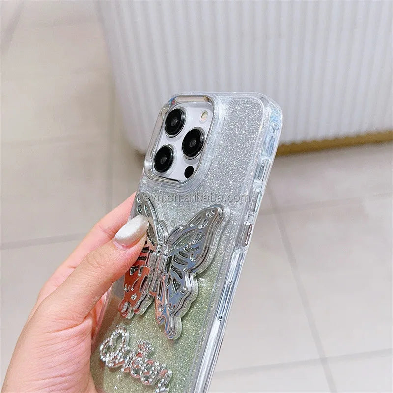 Elevate your smartphone protection with our Plating Phone Cover featuring a 3D Butterfly Holder.