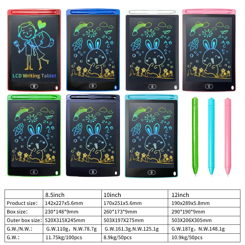 What are the dimensions of the LCD Writing Tablet?The tablet features an 8.5-inch screen, providing ample space for creativity and learning.