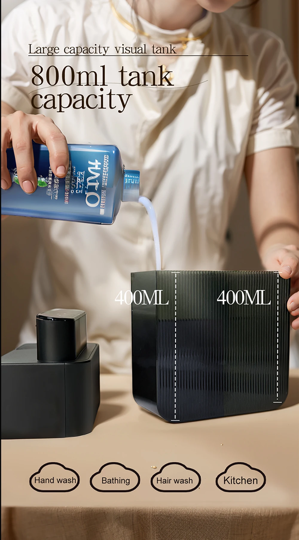 Boasting a robust 800ml capacity, this battery-powered marvel ensures you never run out of your essential liquids. Its automatic sensing feature means no more mess or hassle—just pure convenience.