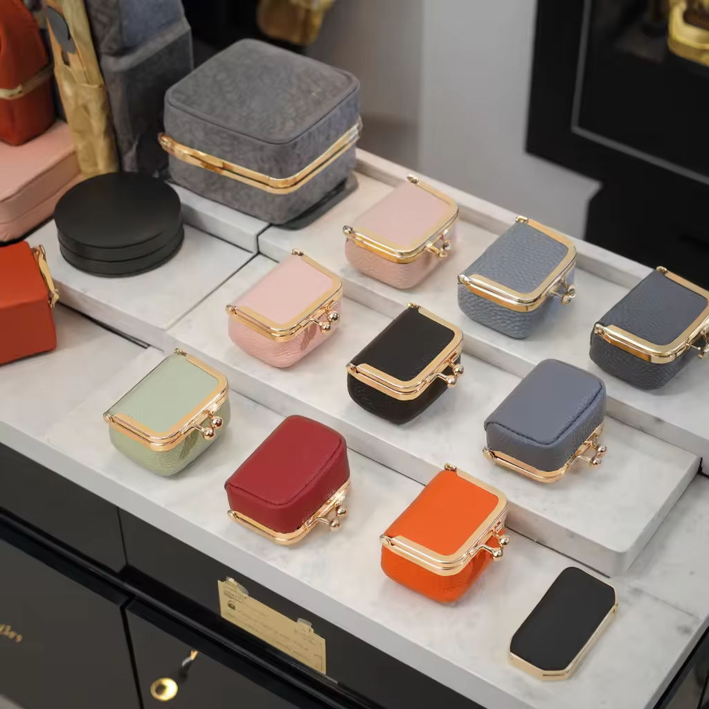 Elegant Small Jewelry Container – Mini Gold Leather Bag for Women’s Rings, Earrings, and Coins