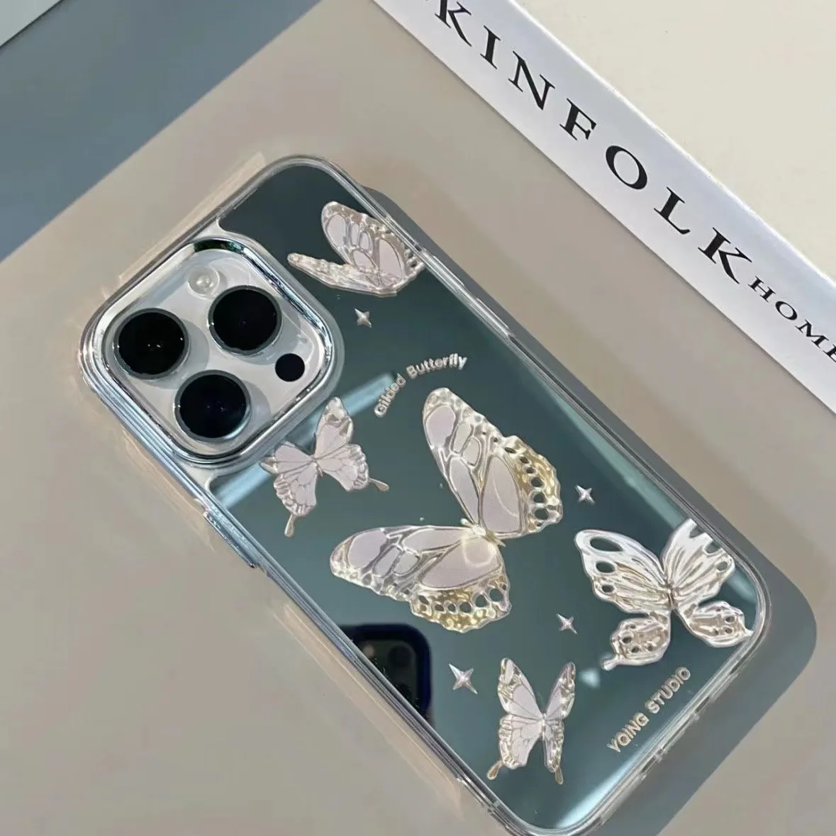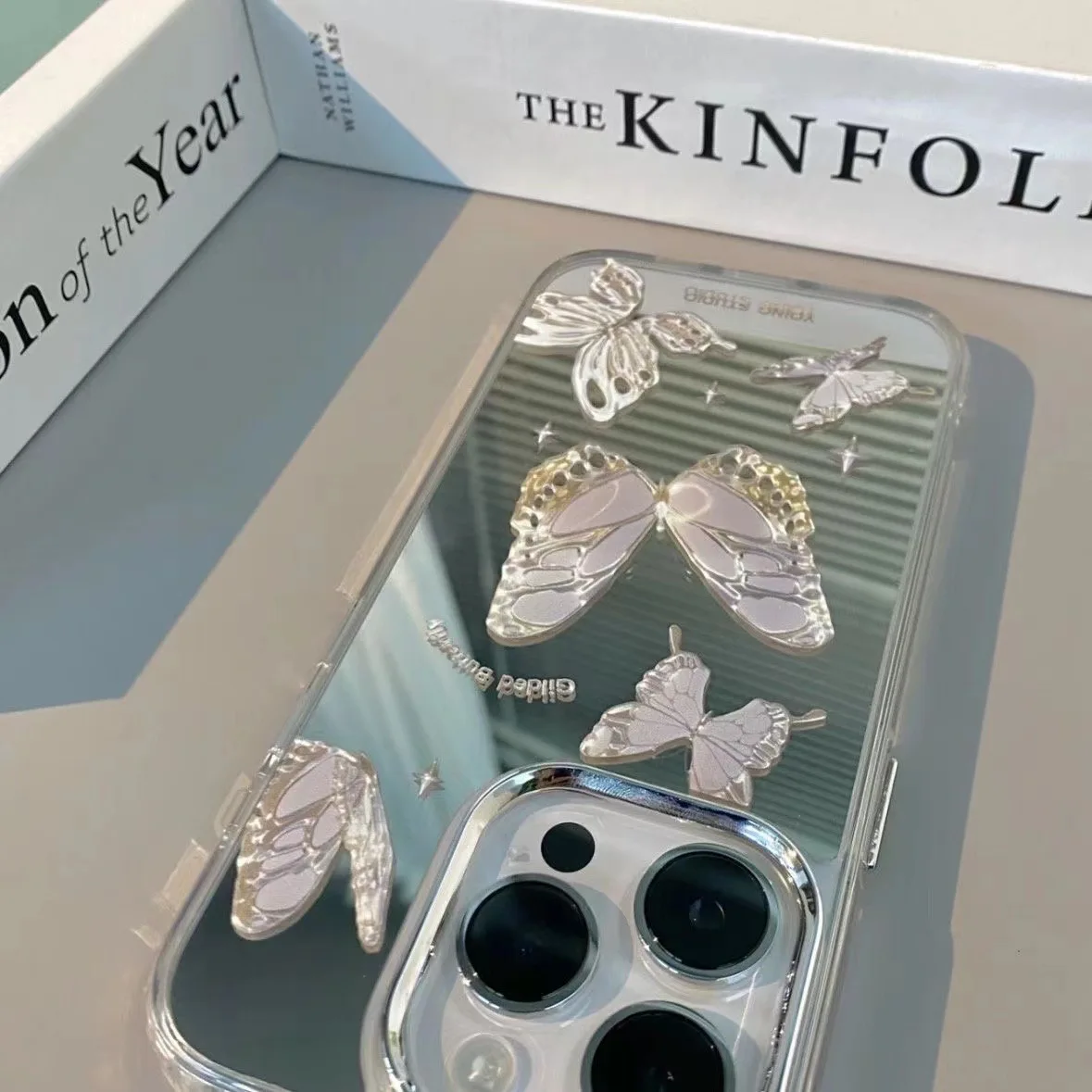 Luxury Butterfly Makeup Mirror & Mobile Phone Case for iPhone