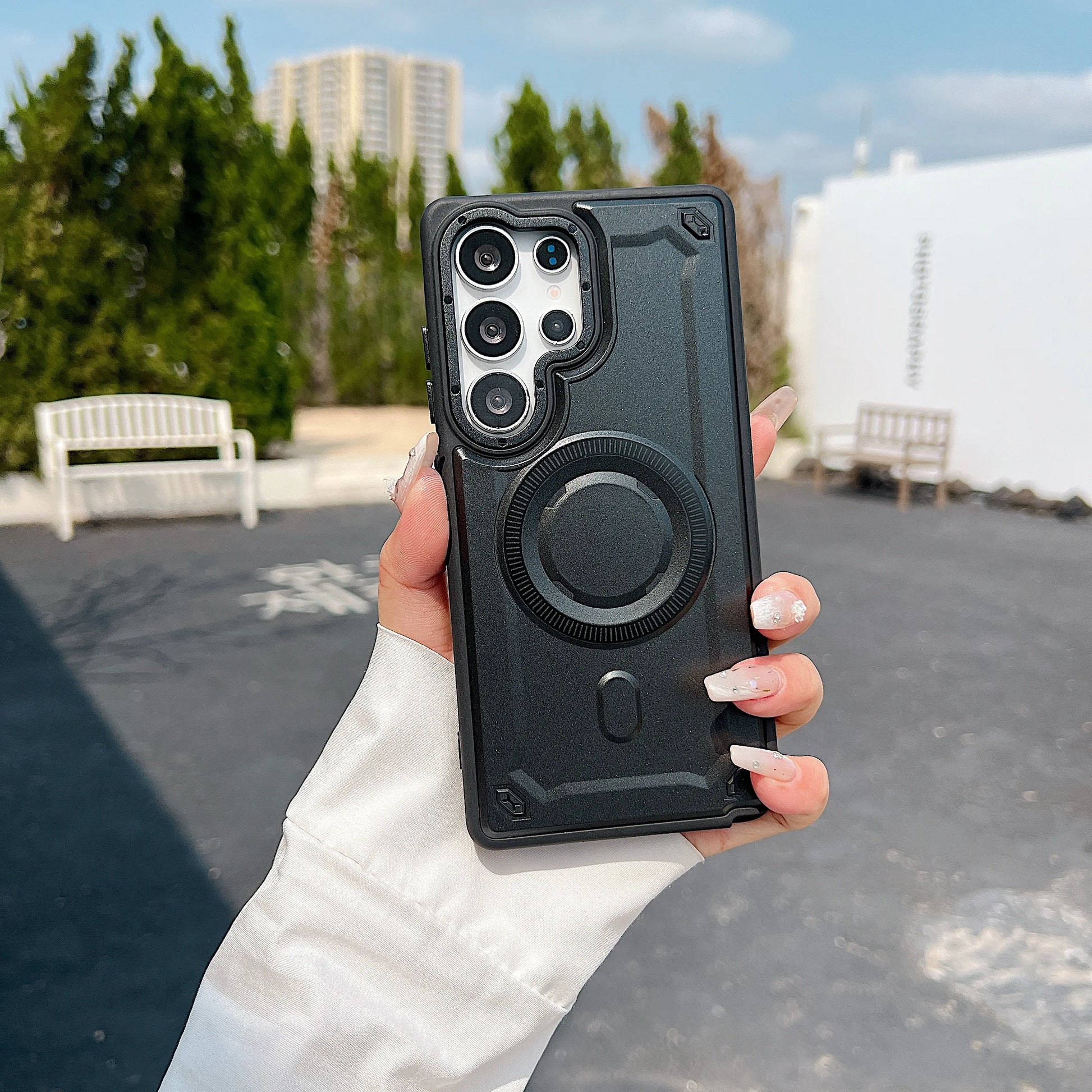 Magnetic Design: Effortlessly attach your phone to magnetic mounts for convenient hands-free use.