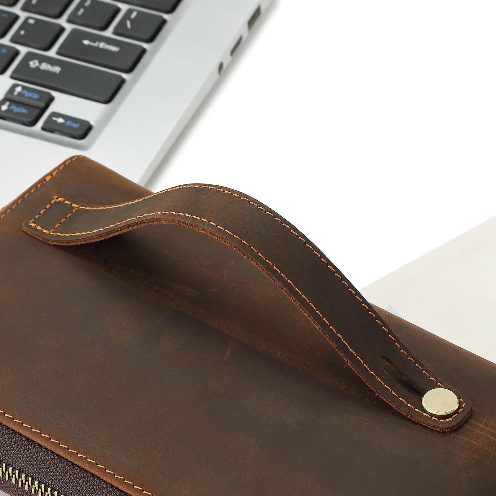 Crafted from 100% real cowhide leather, this elegant black clutch bag features a long adjustable strap for easy carrying. Its sleek design, spacious compartments, and premium finish make it perfect for daily use, business, or travel.