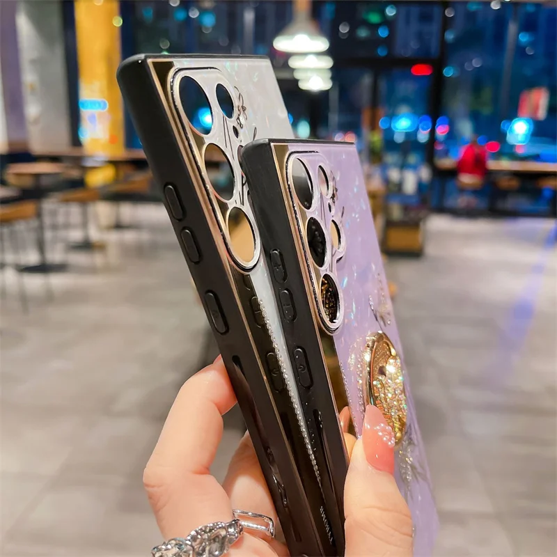 luxury glitter bling diamond 3D butterfly ring stand holder phone case for samsung galaxy s24 s23 s22 plus ultra |