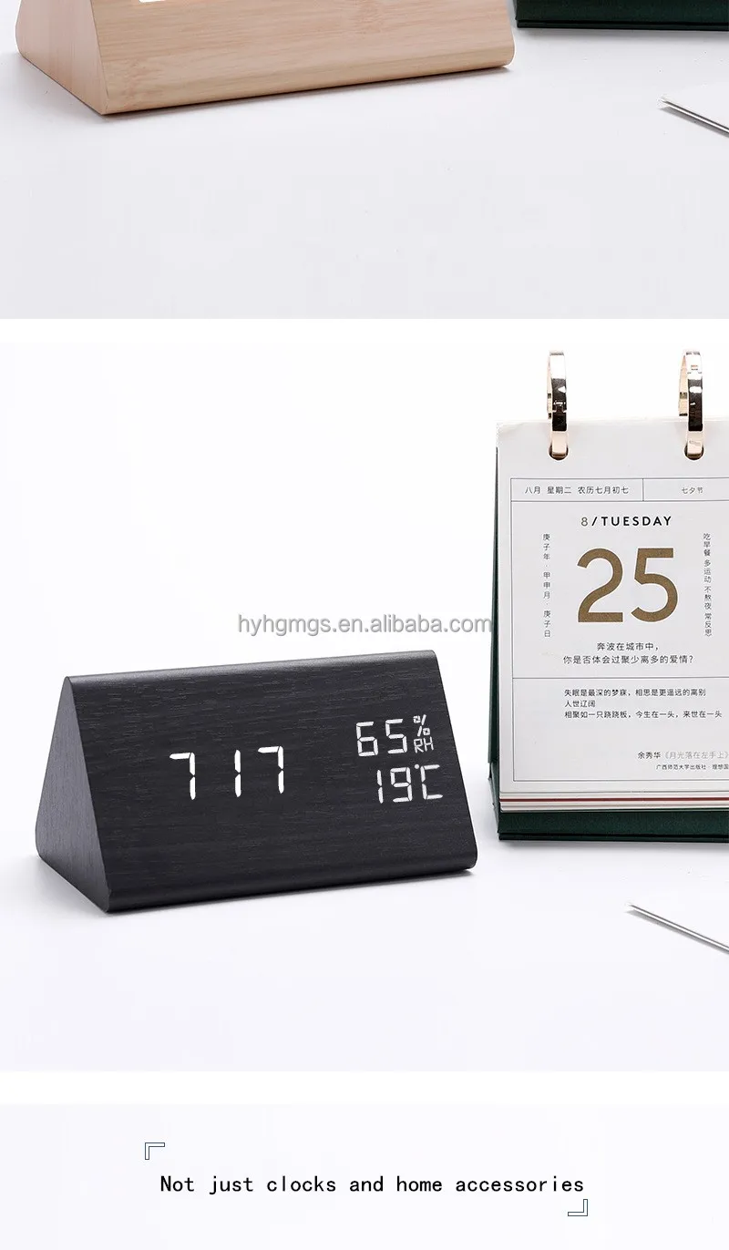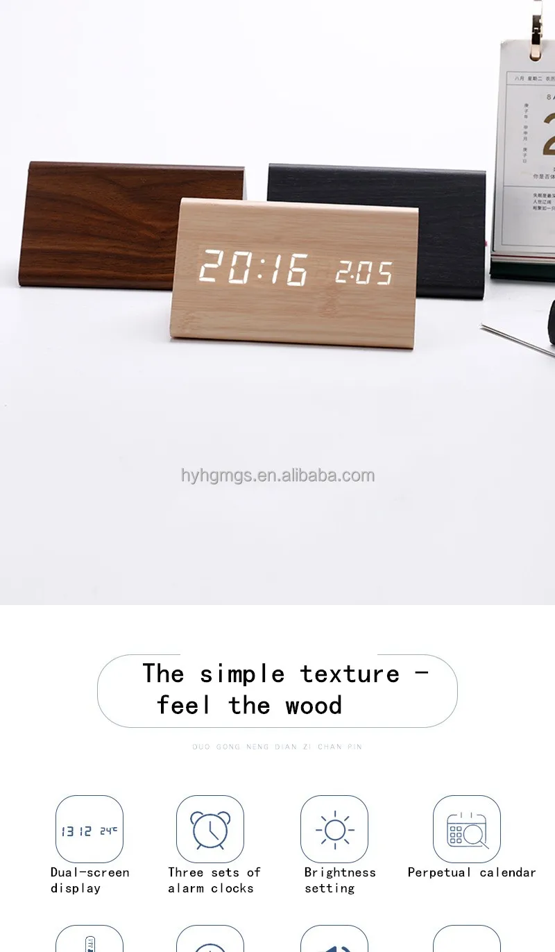 Wooden LED Alarm Clock with Temperature & Humidity Display